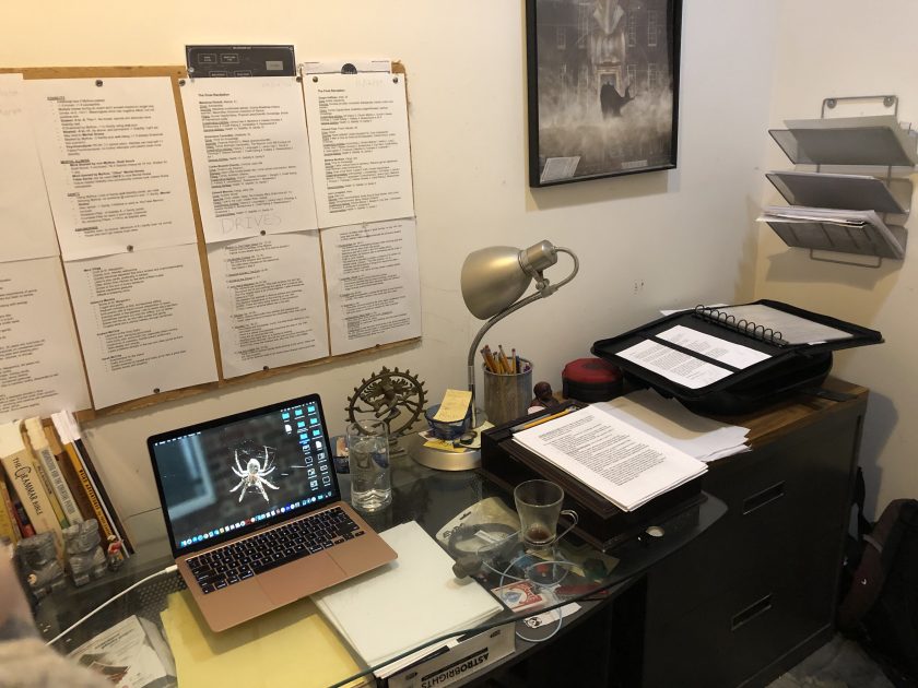 Luke and Tick Tock had seen dead bodies being carried out of the mansion. They decided to follow a car that was carrying a body away. It led them on a long drive into the desert. They evaded detection and were able to see two men burying a body, upright, in the rocky sand. They stayed out of sight till the men left. They dug down to the shoulders of the body and examined its head and neck for signs of mouths. They didn’t find any, but noted that the corpse’s face was covered in a dried, translucent paste. They reburied the body and headed back to the Hotel Roosevelt.